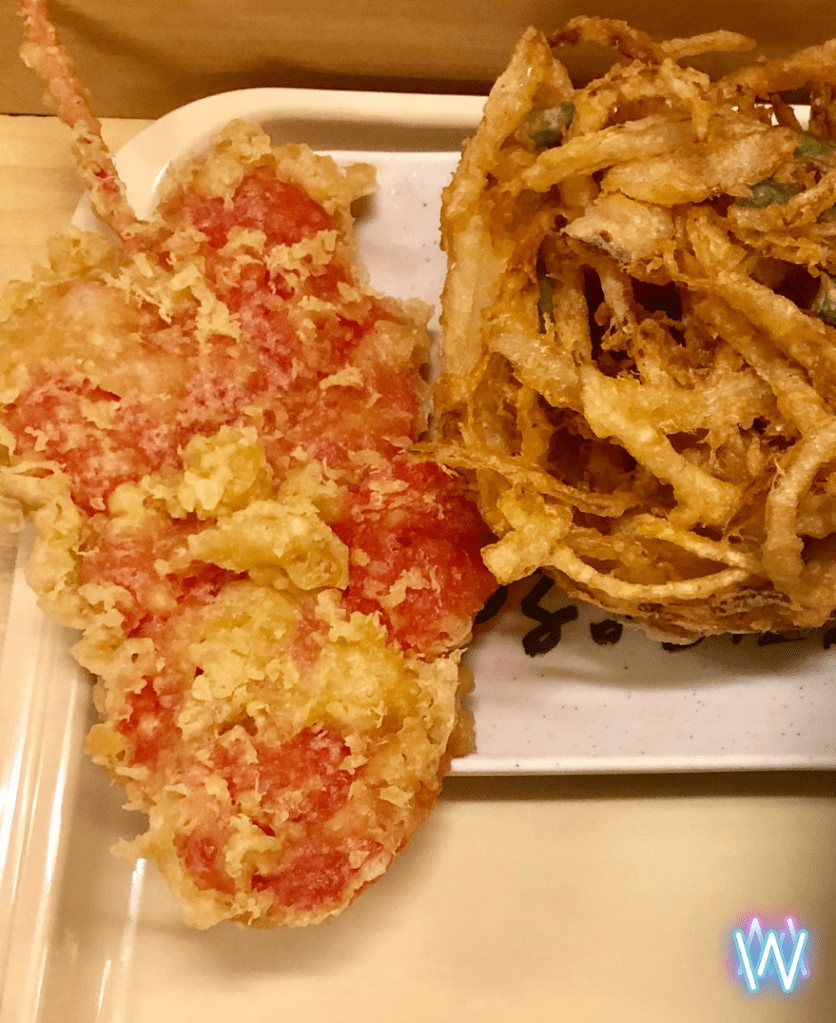 It was a little small, and the food wasn’t gourmet, but it was delicious! We ordered their spring beef noodles, udon, and tempura ginger, sweet potato and shrimp. When we tried the beef noodles we were shocked! We honestly were expecting them to taste ordinary, but they were delicious. The noodles were cooked to perfection, and the beef was well-seasoned and not overcooked. They were topped with fresh scallions and dried garlic, which added more flavor and depth to the dish. Underneath the bed of noodles was a beautiful, dark-gold egg that added creaminess to the noodles. These noodles tasted like spring, and for less than $5 they could contend with any other pricey bowl.