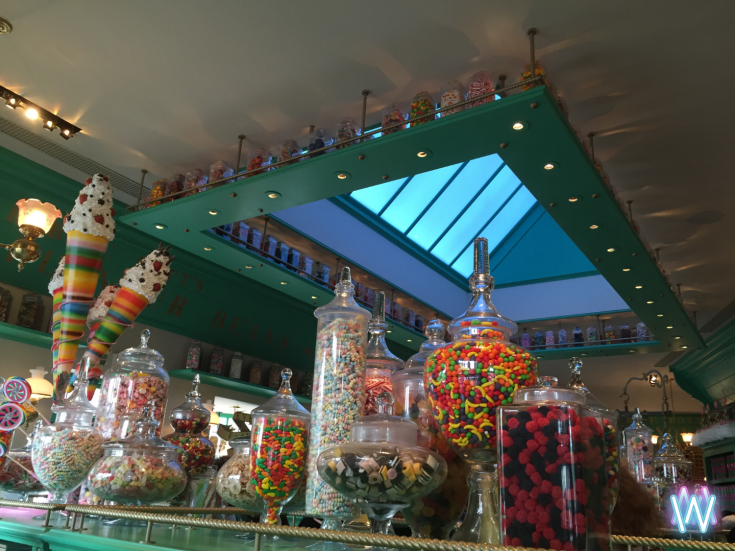 We stayed in Honeydukes longer than I am willing to admit, but there was a lot to take in and many people to avoid because it was so crowded. I really wanted to buy the cauldron cakes, but they would have melted, so I didn’t risk it. The chocolate frogs were cute, and we loved the cards inside. They were 3D, so the images did look like they were moving, just like in the book and movie.
